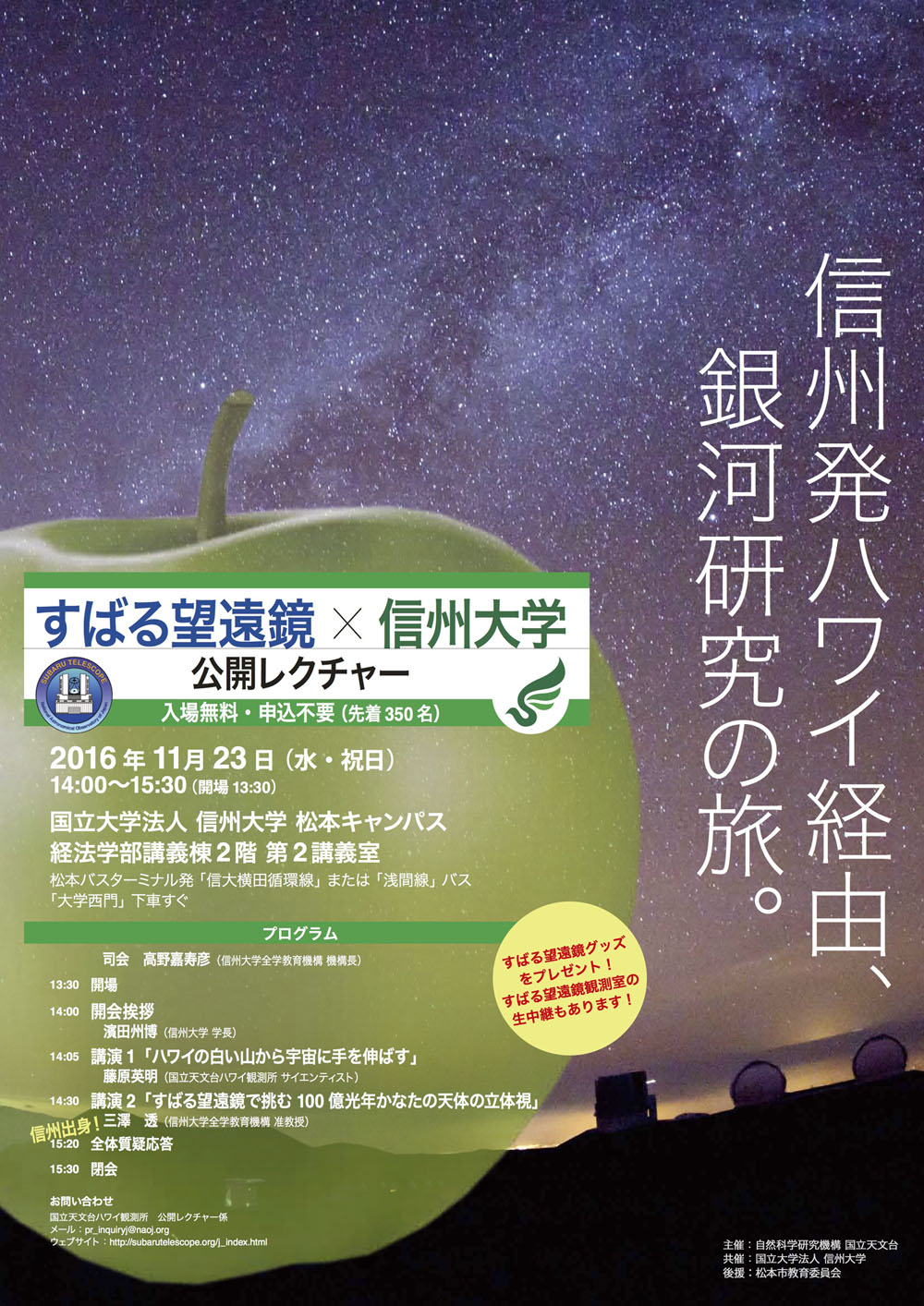 | テーマ | 「信州発ハワイ経由、銀河研究の旅」 (ポスター PDF 版) |