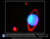 and two of its satellites Miranda (top-center) and Ariel