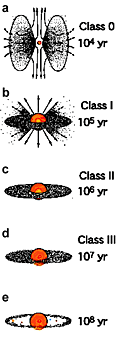 (図1) 太陽のような星とその周りの物質の進化の模式図