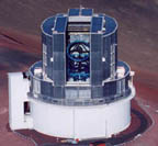 すばる望遠鏡に搭載されたHIPWACの写真。検出器と追尾システムがこちらに向いており、電気系筐体の一つが右側に見えます。