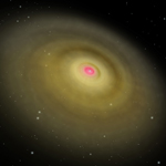 Beyond its function as the gas supply for star formation, a circumstellar disk also provides raw material for planets. Material left over from the star formation gradually stick together, making pebbles and rocks. These amass together to form even larger bodies, such as 100-meter-wide planetesimals. All of this material continues to rotate around the star while it grows into ever-larger bodies. Eventually, if conditions are right, this accretion process produces a rocky planet similar to Earth.