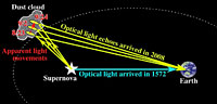 This observational study at Subaru established how light echoes can be used in a spectroscopic manner to study supernovae outburst that occurred hundreds of years ago. The light echoes, when observed at different position angles from the source, enabled the team to look at the supernova in a three dimensional view. For the future, this 3D aspect will accelerate the study of the outburst mechanism of supernova based on their spatial structure, which, to date, has been impossible with distant supernovae in galaxies outside the Milky Way.