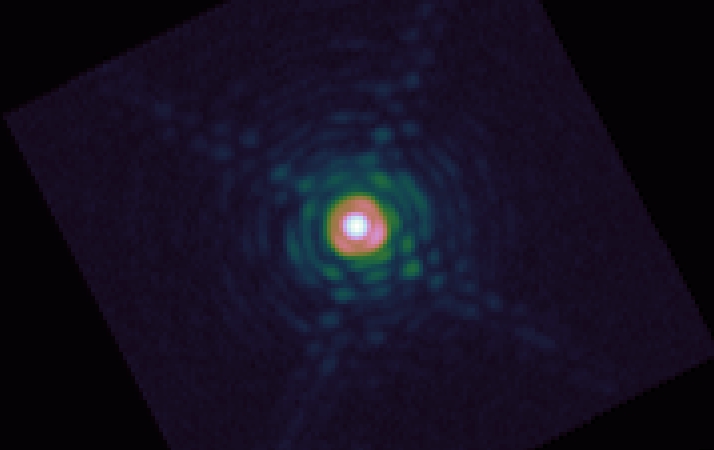 Unocculted K band PSF for LkCa 15 (R ~11).The core is diffraction limited; nine Airy rings are visible. (Data taken by T. Currie) |