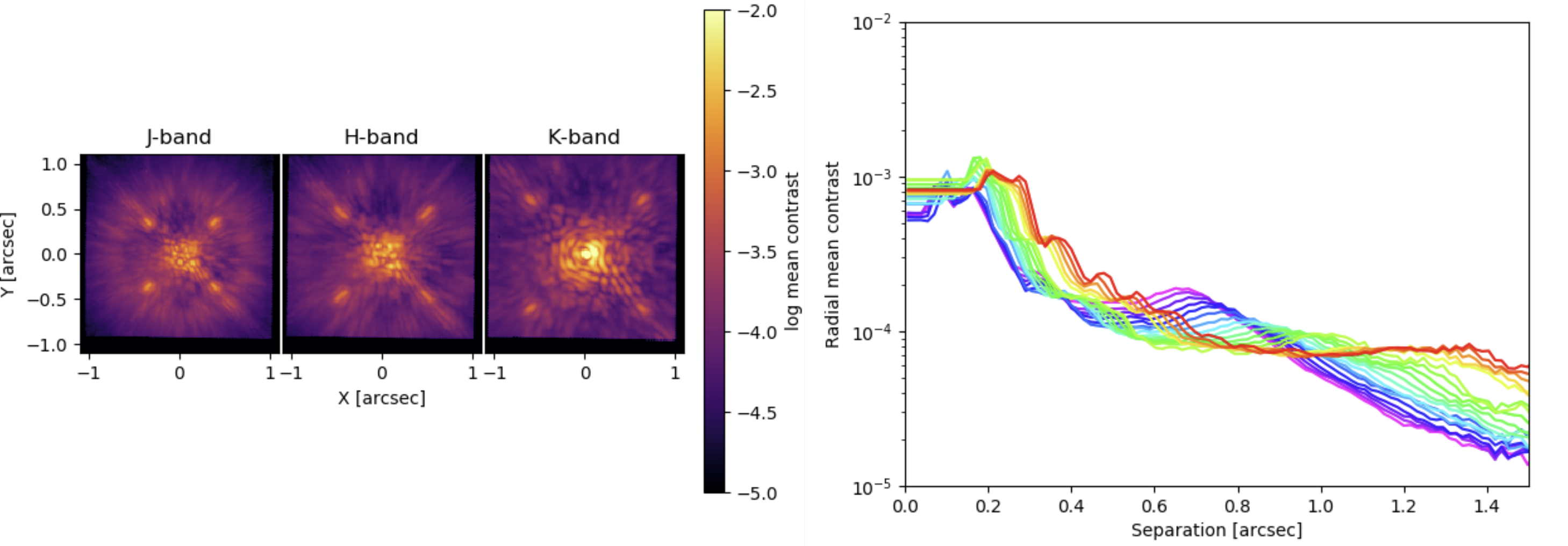 A dark hole (control region of the deformable mirror) is visible, even at short
