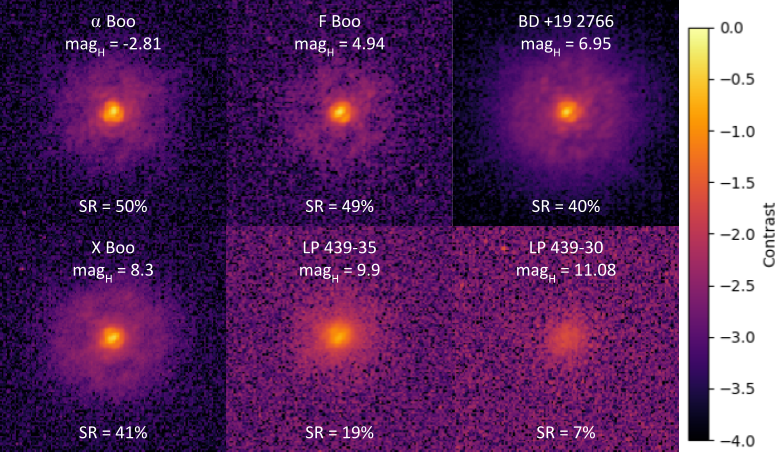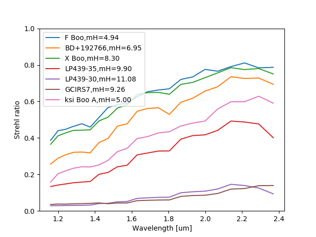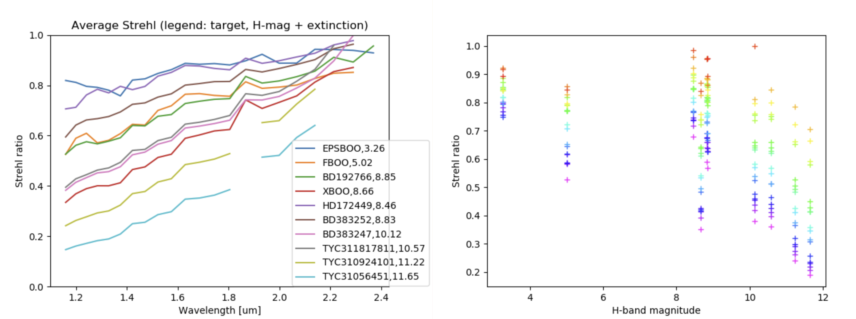 Strehl ratio measurements on the binary ξ Boo AB (H-mag ~5 for both stars).