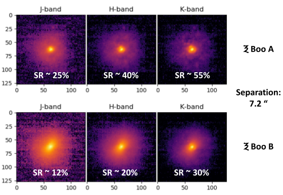 relatively high wind. The Strehl ratio of ξ Boo B is reduced by ~50% compared