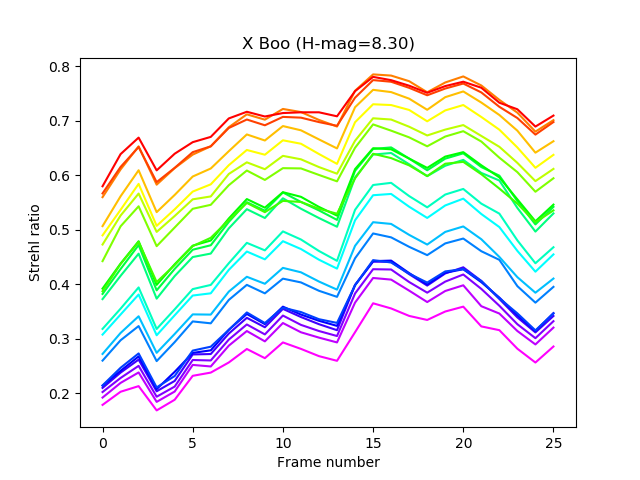Strehl ratio measurements on the target X Boo, for all the 30 s CHARIS frames