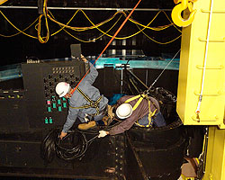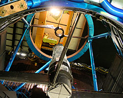 望遠鏡のてっぺんの内部の筒 (内環) を削ったのは、やがて導入される新世代の観測装置が大型であるため、それを入れられるようにするためです。おまけに重さも増えるので、望遠鏡のあちこちにそれと釣り合いをとるための重りも付けました。たくさんのケーブルを外したり、戻したり、やっぱり息切れがして大変な作業でしたよ。