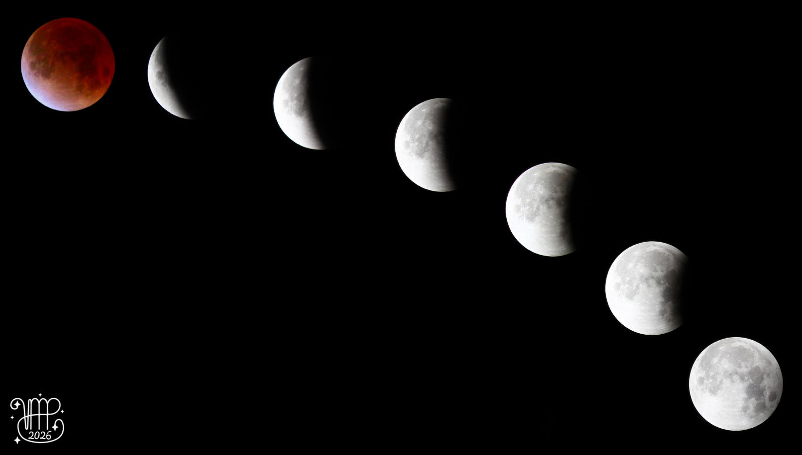 Figure 3: Composite image of the final stages of the total lunar eclipse. (Canon EOS 600D, 300mm) (Credit: Dr. Vera Maria Passegger/NAOJ)