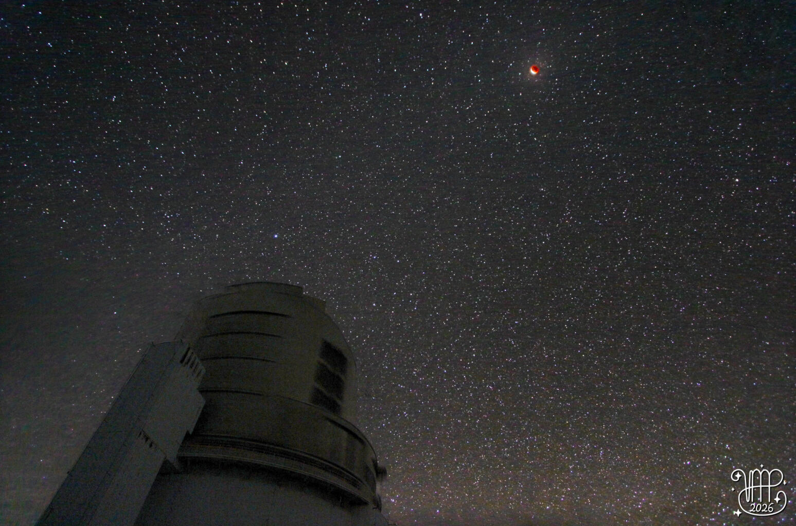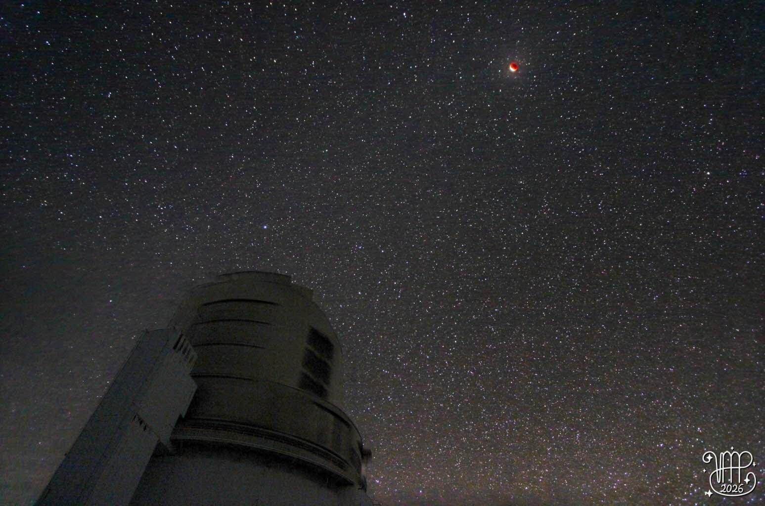 ハワイ時間 2026年3月2日の深夜、太平洋地域などで皆既月食が観測されました。日食が地球上の限られた帯状の地域でしか見られないのに対し、月食は月が地平線上に出ている地球上の広い地域から観測することができます。ハワイ観測所のサポートアストロノマーであるベラ・マリア・パッセガー(Vera Maria Passegger)さんは、マウナケア山頂域にあるすばる望遠鏡施設から皆既月食を撮影しました。また、同じくサポートアストロノマーの田中壱さんは、月食の様子をライブ配信しました。