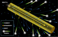 今回の研究のハイライトは、塵が大気中の原子を蹴散らす現象が起こっている現場 (発光領域:注2) のサイズを、物理学的な分析から世界で初めて測定することに成功したことにあります。