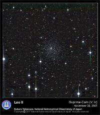 Categorized as a dwarf galaxy (Note 1), Leo II is a small faint galaxy located relatively closely (760,000 light years away) and its mass amounts to only 1/20,000 of the Milky Way (10 millions of solar mass).About 10 such small and faint dwarf galaxies are found around the Milky Way, and 40 are found in the Local Group (Note 2). Figure 1 shows the image of Leo II obtained by the Subaru Prime Focus Camera (Suprime-Cam) on the Subaru Telescope.The prevailing scenario for galaxy formation reports that massive galaxies, such as our Milky Way, grow up by 'eating' small galaxies to attain their extensive size. In response, dwarf galaxies that have survived are important to study not only to understand how they themselves have formed and evolved but to comprehend the evolution of massive galaxies.
