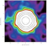 The team first investigated the extent of Leo II by counting the number of red giant stars (Note 4), which were selected from the color-magnitude diagram of Leo II (Figure 2), as a function of the radius; over a dozen red giant stars were found to exist beyond the tidal radius. To investigate how these extra-tidal stars are distributed, the team made the surface brightness map determined by the stars that belong to Leo II (Figure 3). As seen in this picture, a knotty structure, whose surface brightness is as faint as about 31 mag/arcsec2, was discovered on the east (left) side of Leo II. The stars belonging to the structure are relatively old and their properties are similar to that of the stars located within the main body of the galaxy. The team suggested that this structure could be a small globular cluster being disrupted by the tidal force of the galaxy; however, further observation is required to give a definite answer.