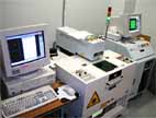 レーザー加工装置 (中央が装置の本体、左右はコントロール装置)