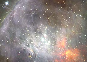 Figure 2 was taken in 2004, in conjunction with the first engineering test of the instrument. The entire Orion Nebula (Messier 42) fit in just two MOIRCS images. It would require as many as 17 shots to capture an image like this with the narrow field of view of CISCO. Compare the image taken with MOIRCS to a composite of 9 images taken with CISCO in the Image of Orion Nebula (Subaru First Light Image: January, 1999). This really gives you a feel for the size of the MOIRCS field of view.